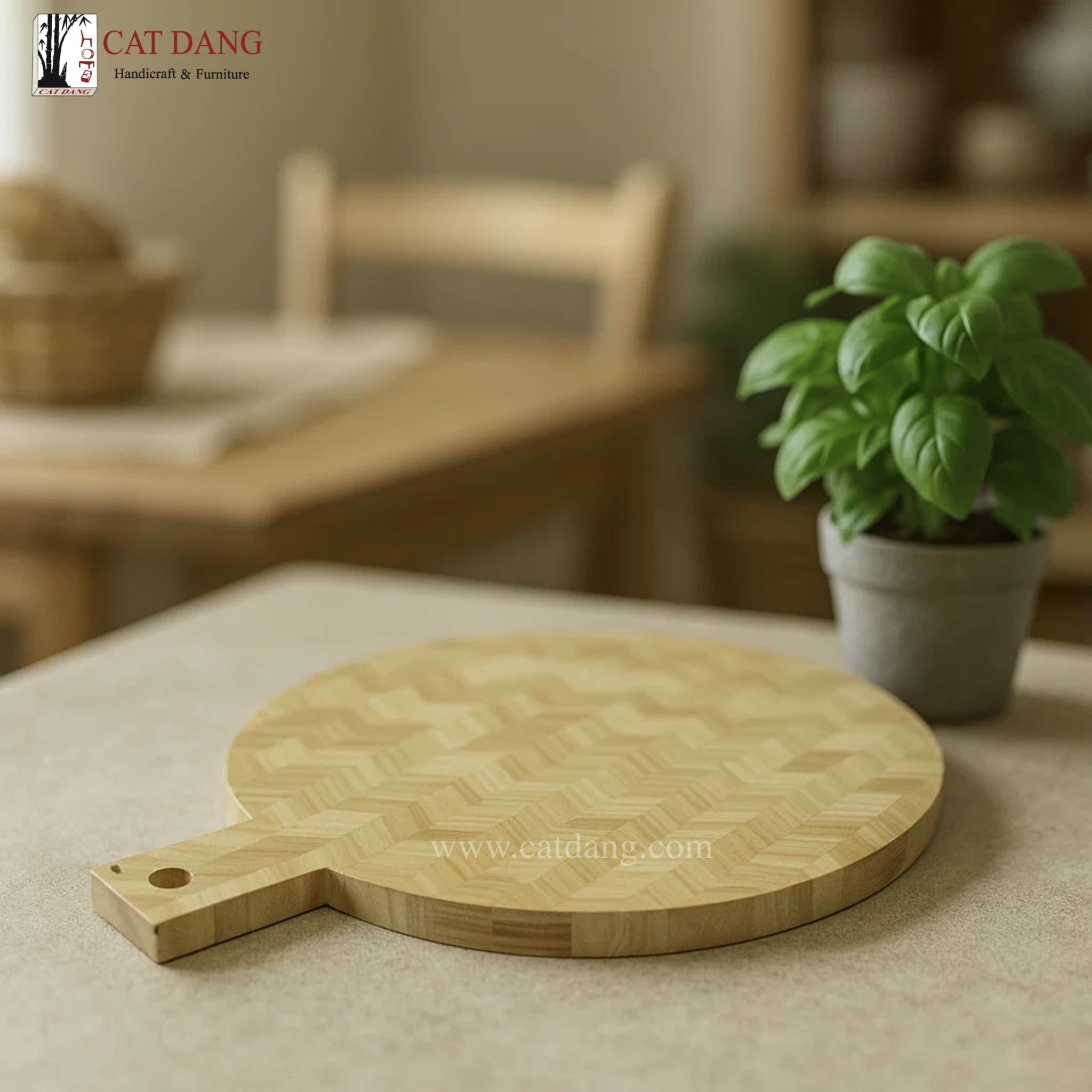 Số lượng đặt sản phẩm Round Herringbone Rubber Wood Cutting Board With Handle của bạn chưa đủ để được tặng/giảm sản phẩm